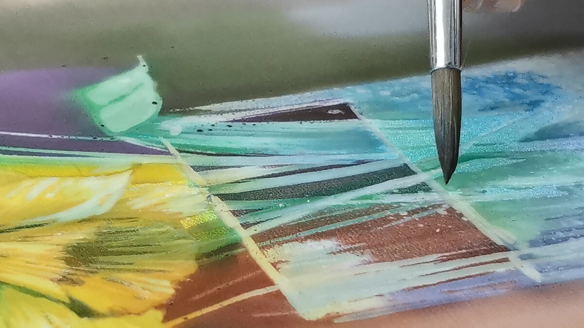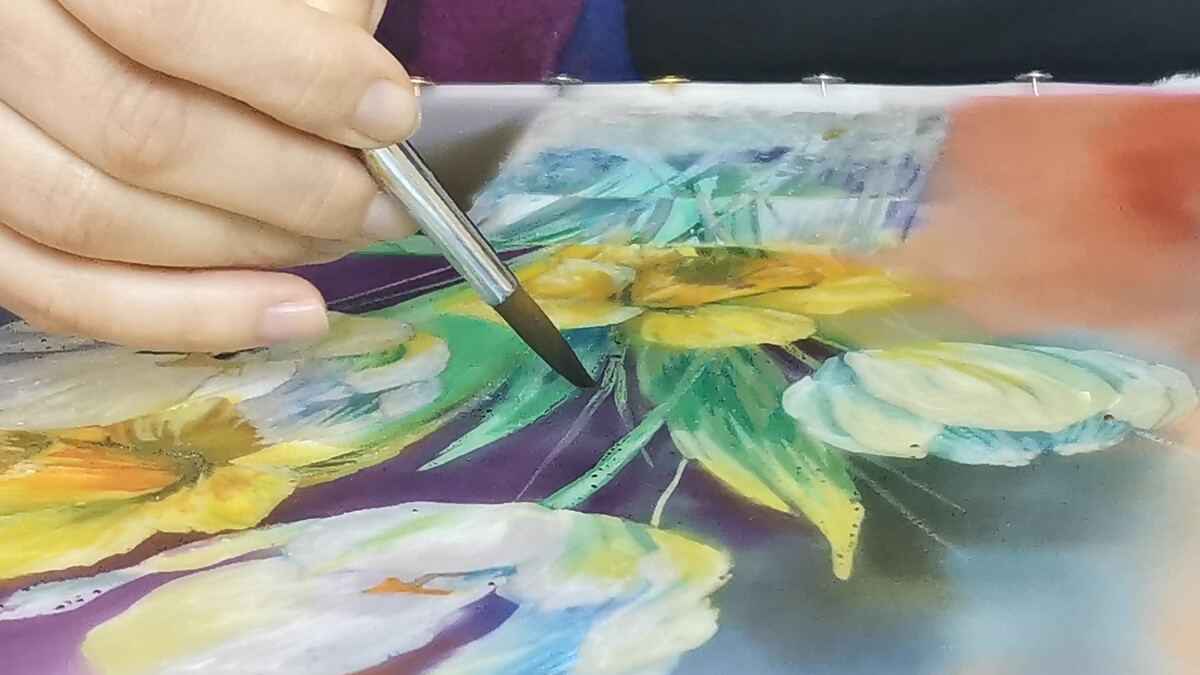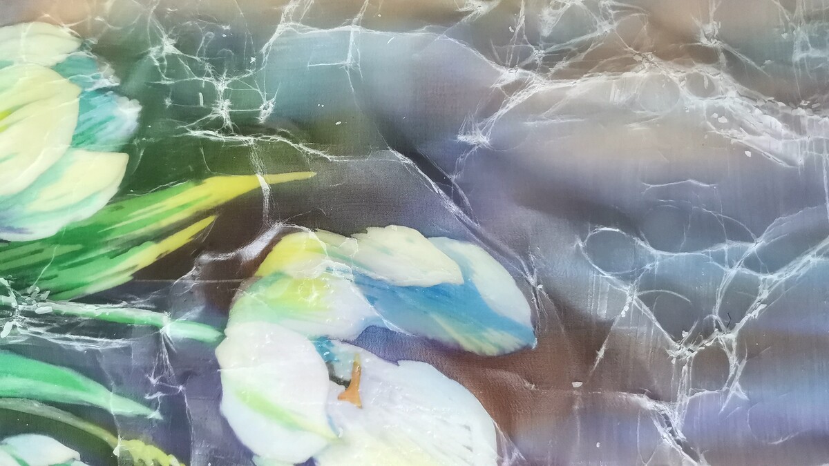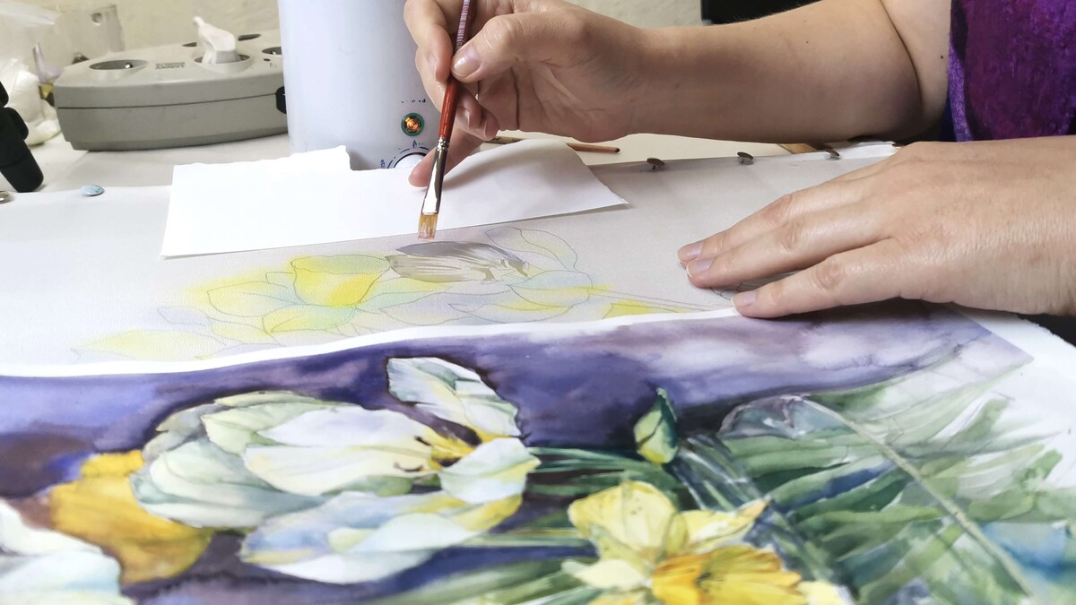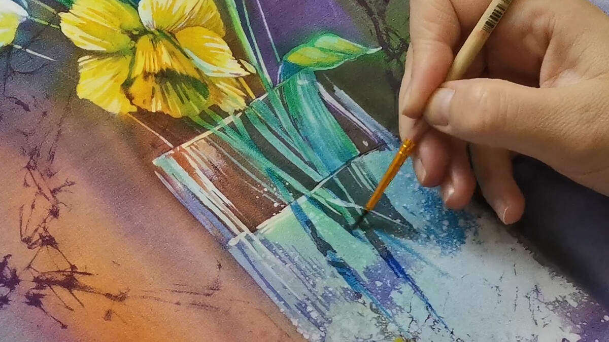 И только после всего этого мы перейдем к шелку. Пойдут слои цвета и воска — и появится натюрморт на шелке.