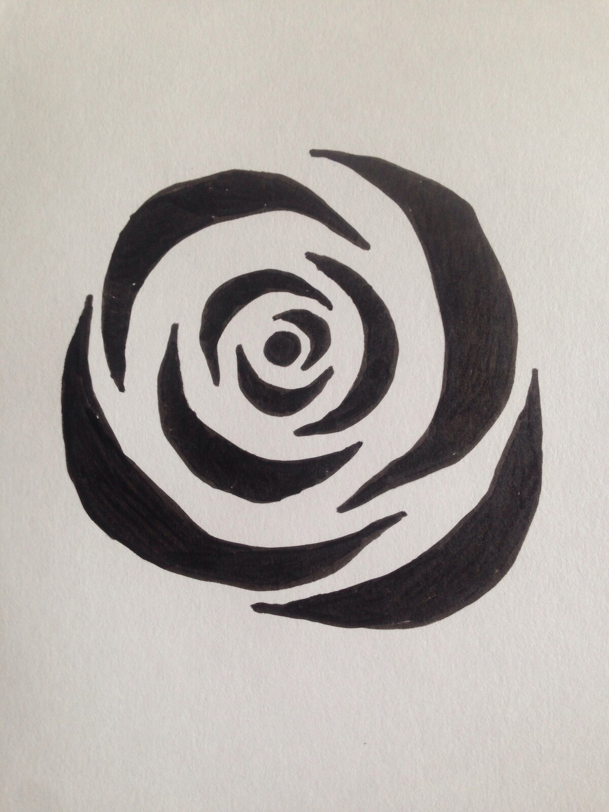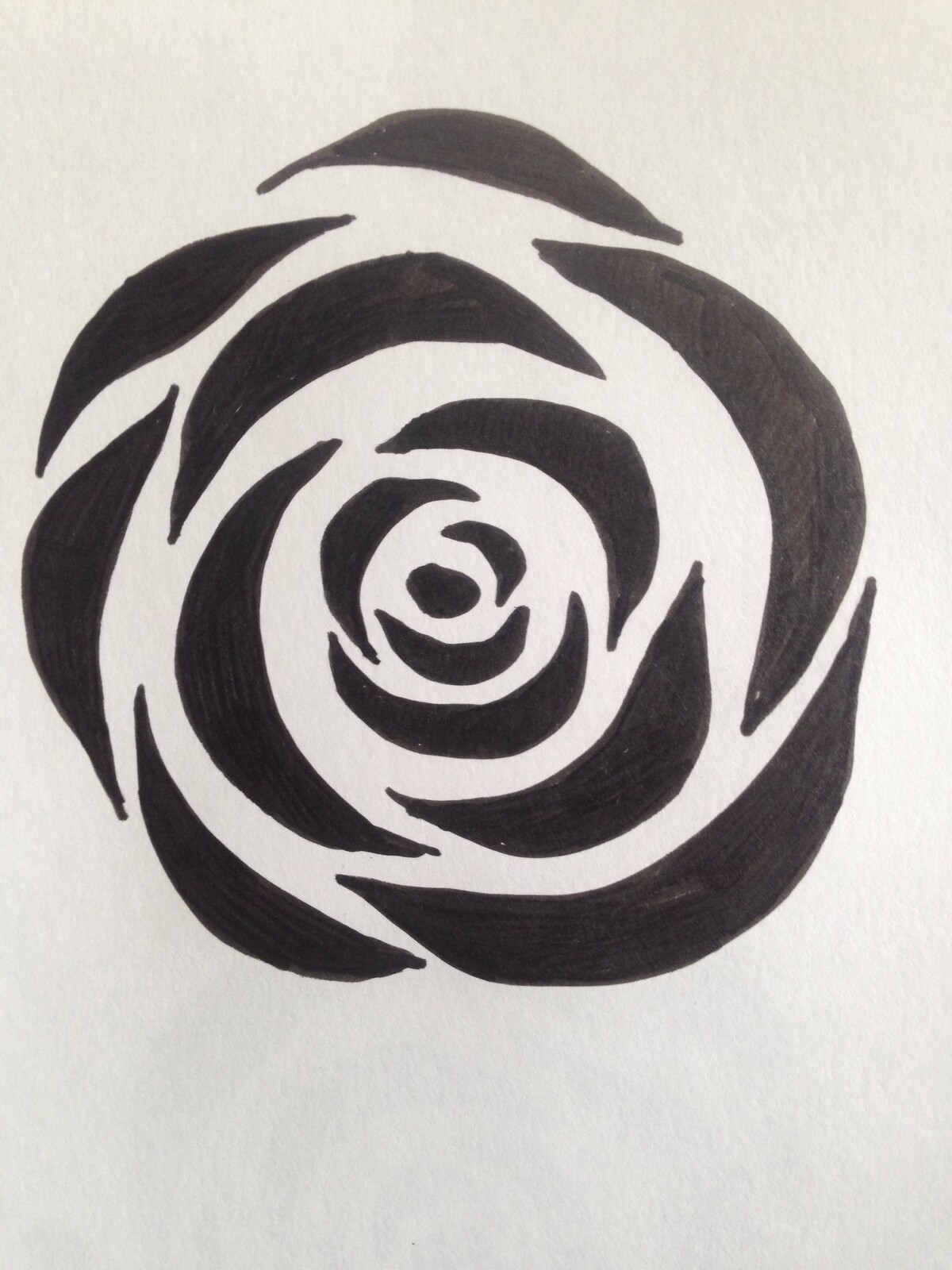 3. Подготовьте трафарет - нарисуйте или распечатайте рисунок розы (прилагается ниже) и вырежьте темные места. Это и будет трафарет розы. Лучше сделать 2 размера побольше и поменьше. Можно использовать и один размер, все равно с применением разного цвета и разного угла наклона они будут отличаться друг от друга.