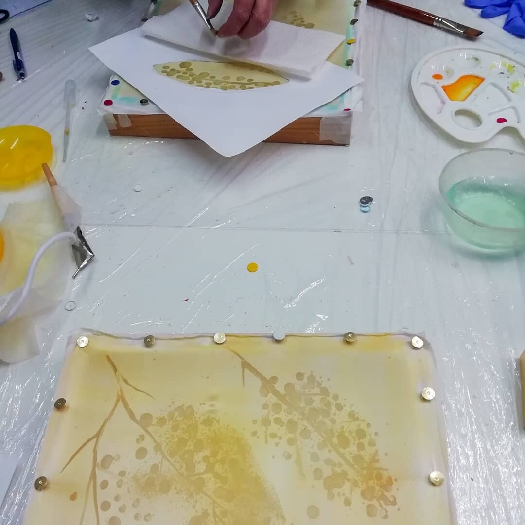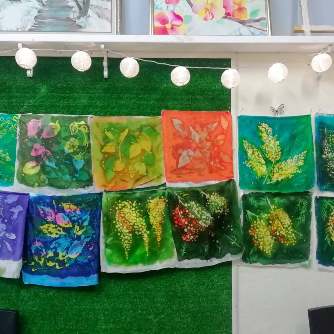 Работы с первых уроков по горячему батику в мастерской на курсе. К концу уроков мы конечно устаем, но зато сколько всего успеваем.