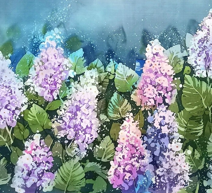 Вдохновившись занятиями в студии, мы решили сделать и онлайн курс росписи сирени в горячем батике.