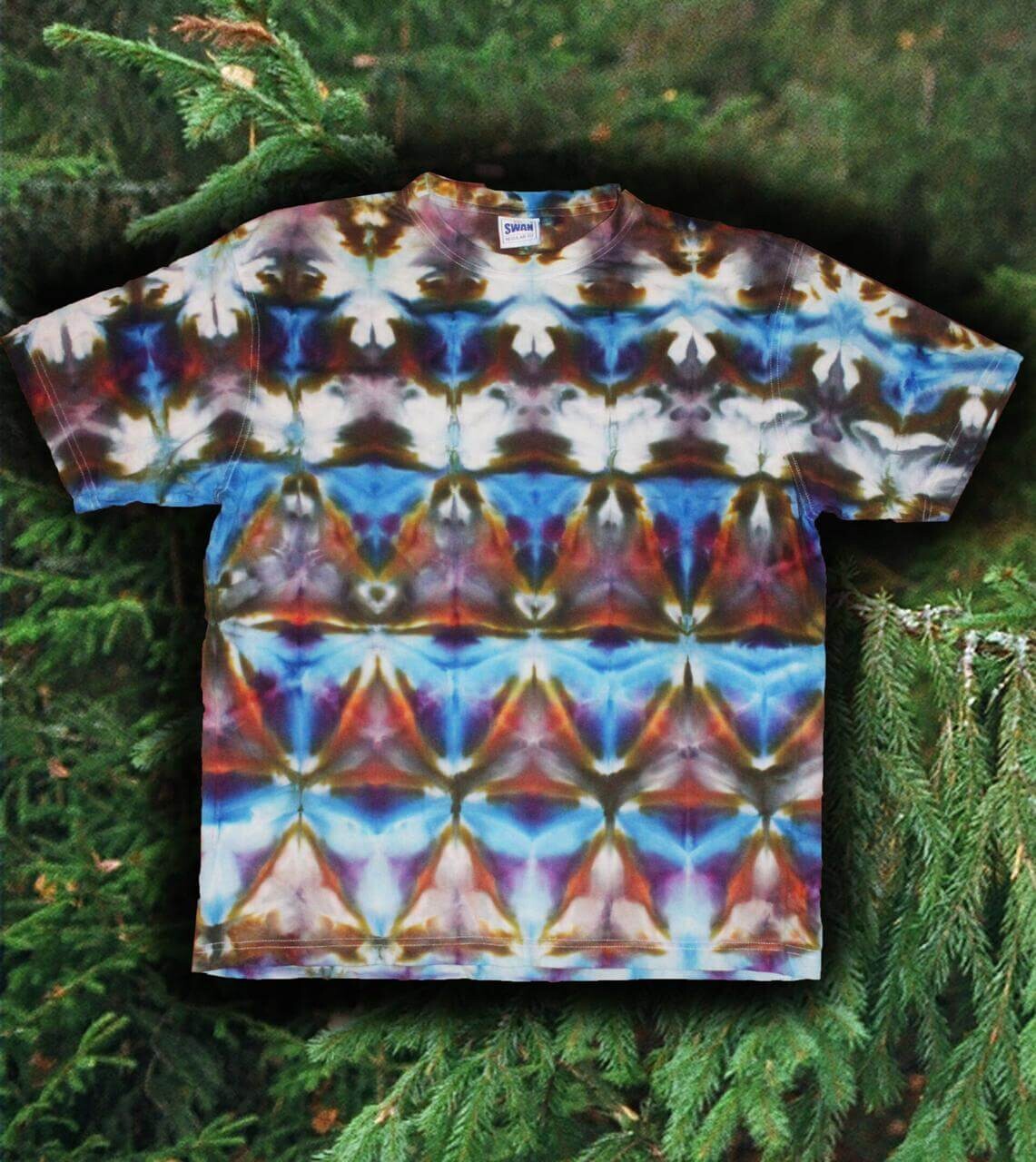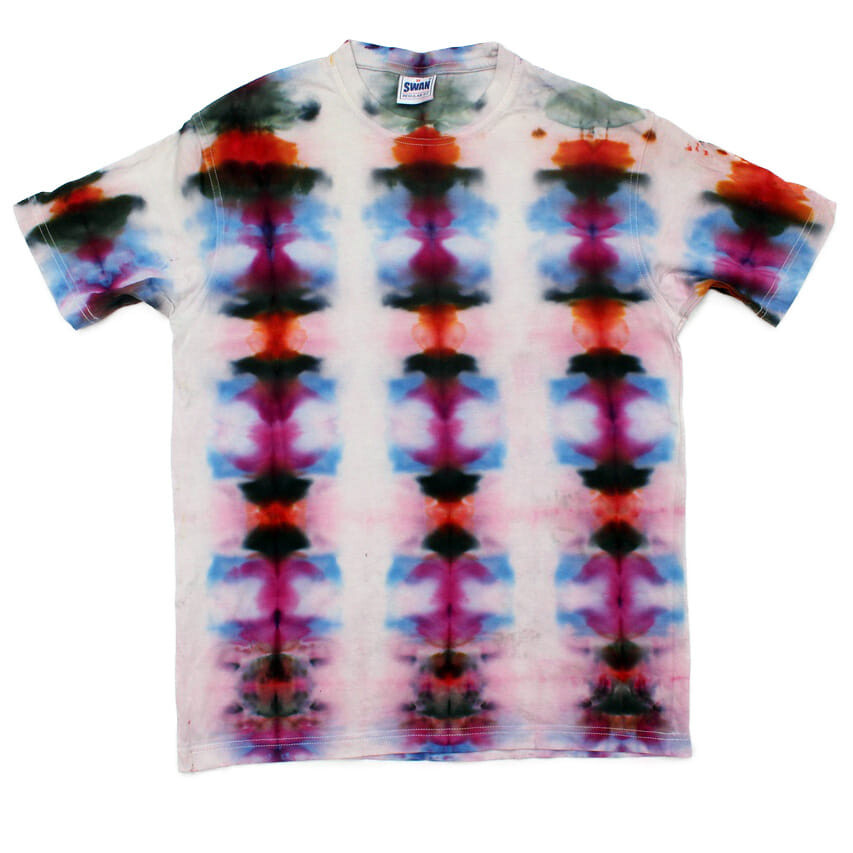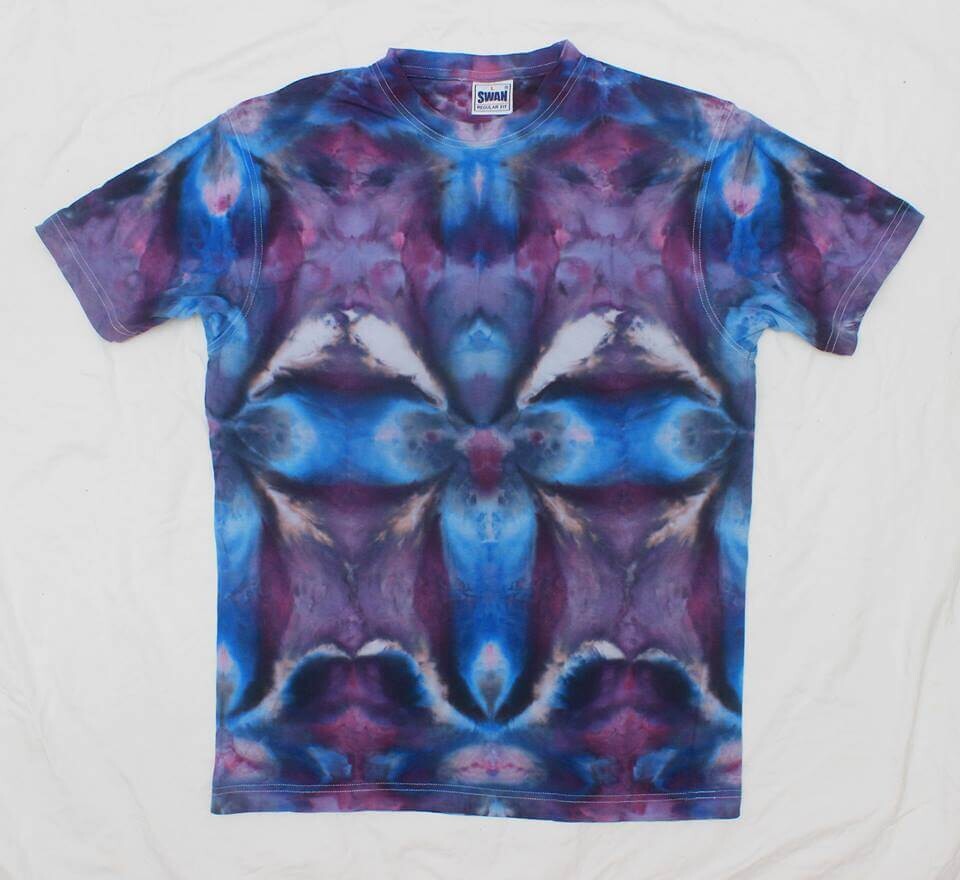 - how to fold T-shirts to make several types of repetitive geometric figures and how to dye using two different techniques — the ice-dyeing and dyeing with liquid dyes.