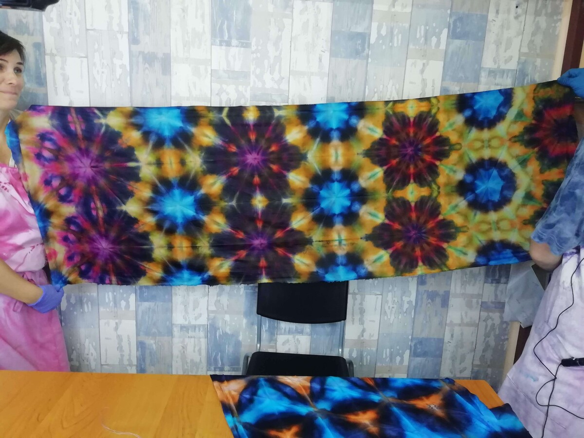 Lessons of geometry in TyeDye. Ice Dyeing. Dyeing with Liquid Dyes.