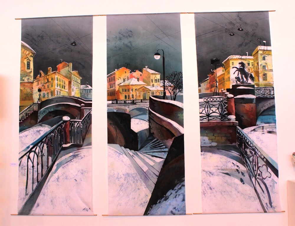 Я сделала много фотографий, прошу прощения за смещение перспективы, так как иногда работы висели очень высоко или бликовали сильно - приходилось снимать в ракурсе и не все имена художников я записала или знаю.