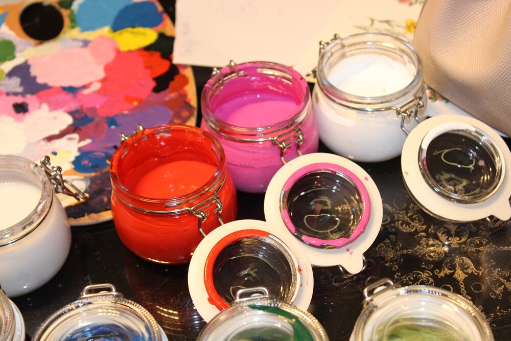 Конечно, я не смогла не задать вопрос по поводу красок. Ответ - специальные профессиональные краски для кожи. Красивые, яркие, стойкие.