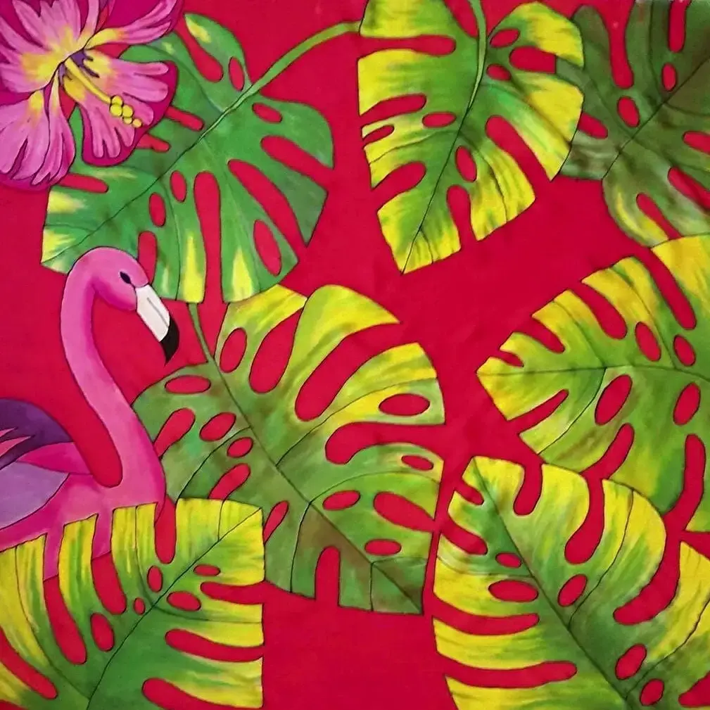 Онлайн курс по созданию яркого платка с тропическими листьями и розовому фламинго