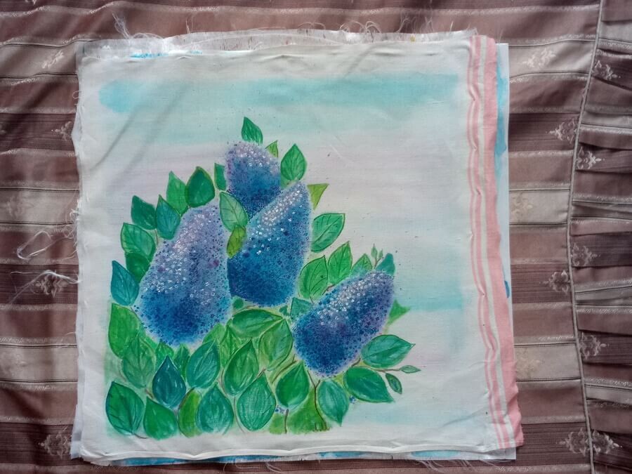 Мокрые они смотрятся темными и страшно, что такими и останутся. А потом краски начинают высыхать, светлеют, цвет меняется, становится нежнее и глубже. Цвет красок становится светом на переливах ткани! Это так чудесно выглядит!