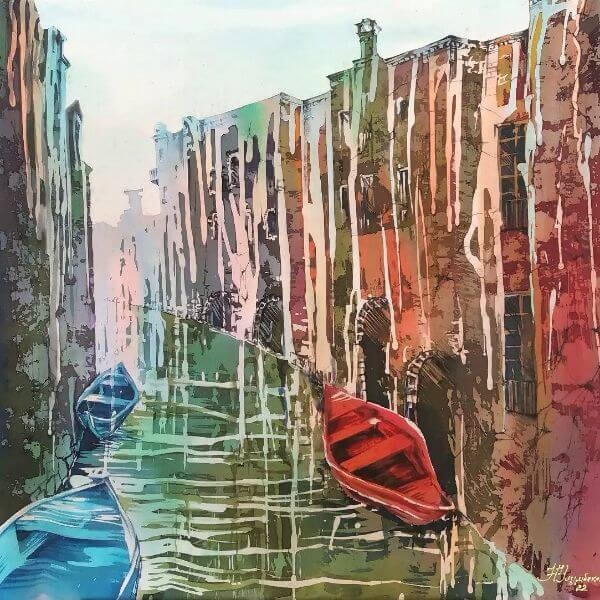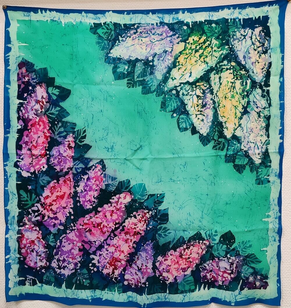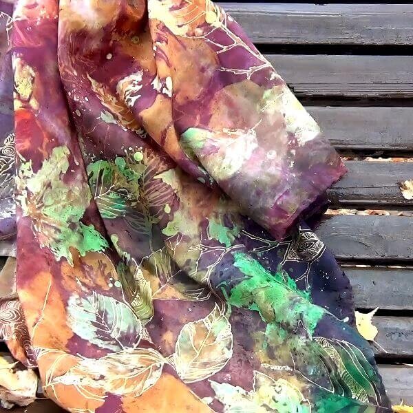 Шелковый платок в супер технике. Создаём многослойную глубину и фактуру горячего батика.