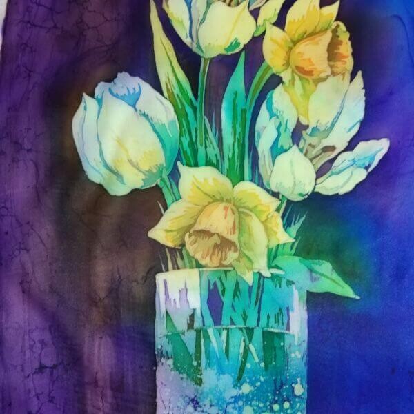 Рисуем ирисы в технике горячего батика. Шаг за шагом, двигаясь от простого к сложному, мы дойдем до создания вашей картины. Пройдя этот экспресс-курс, вы станете обладателем собственной картины «Ирисы» в технике горячего батика, которая украсит ваш интерьер или станет отличным подарком вашим друзьям, близким, коллегам.