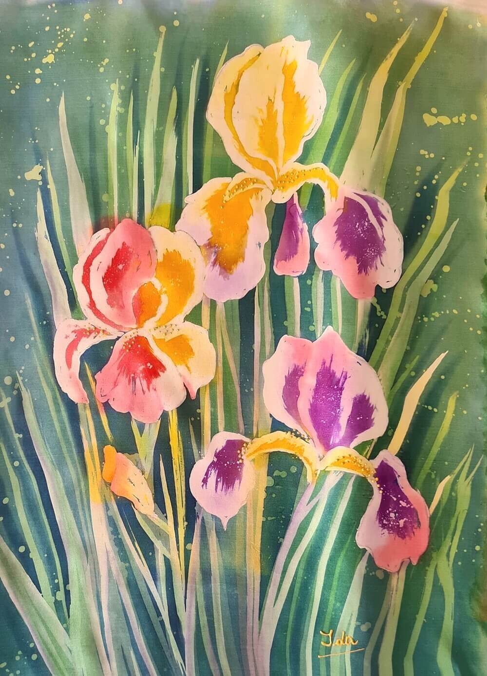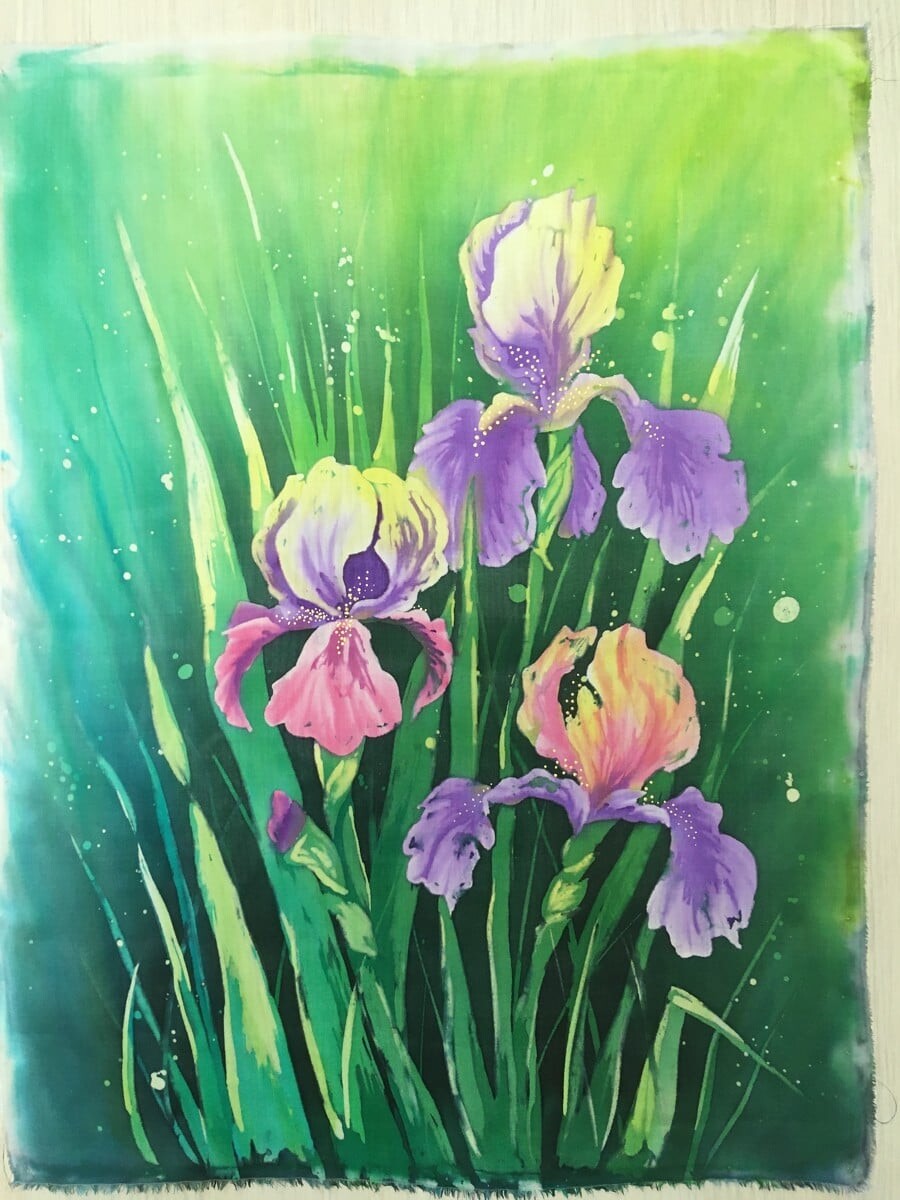 Рисуем ирисы в технике горячего батика. Шаг за шагом, двигаясь от простого к сложному, мы дойдем до создания вашей картины. Пройдя этот курс, вы станете обладателем собственной картины «Ирисы» в технике горячего батика, которая украсит ваш интерьер или станет отличным подарком вашим друзьям, близким, коллегам.