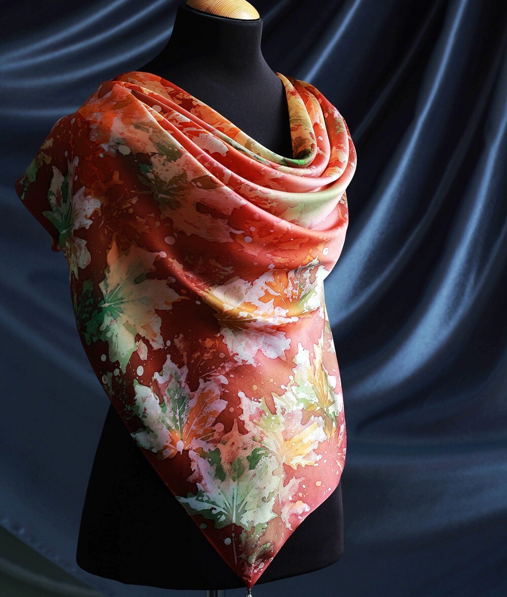 Ваши руки создадут уникальный шелковый платок, наполненный теплом листьев и вашими эмоциями. Платок в этой технике создаст вам прекрасное настроение в любую погоду и время года!