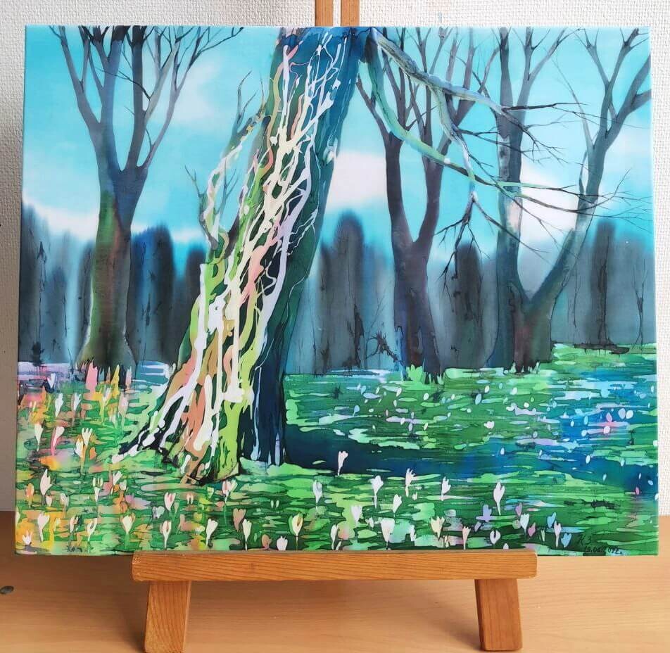 Будем рисовать картину «Волшебный лес» в возможностях горячего батика — поливка воском, обратный батик, кракелюры, штампы, набрызг...