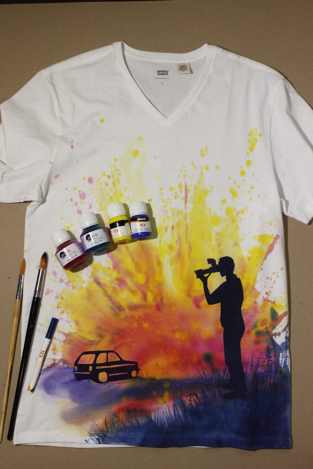 - Краски для ткани (2-3 любимых цвета), карбамид для эффектов