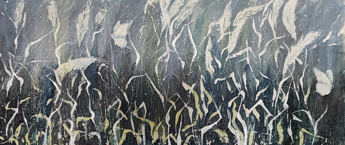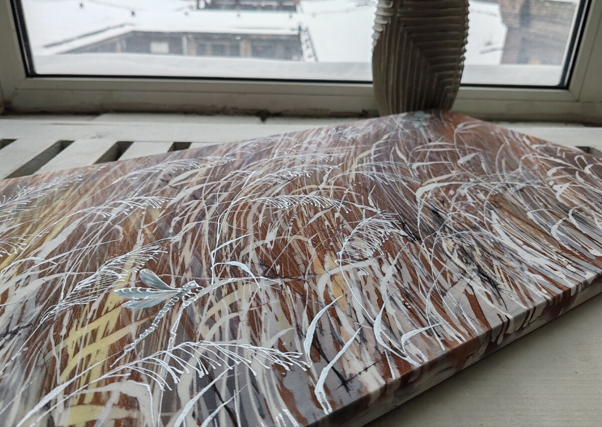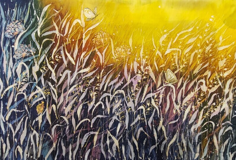 Роспись картины на шелке «Поле»