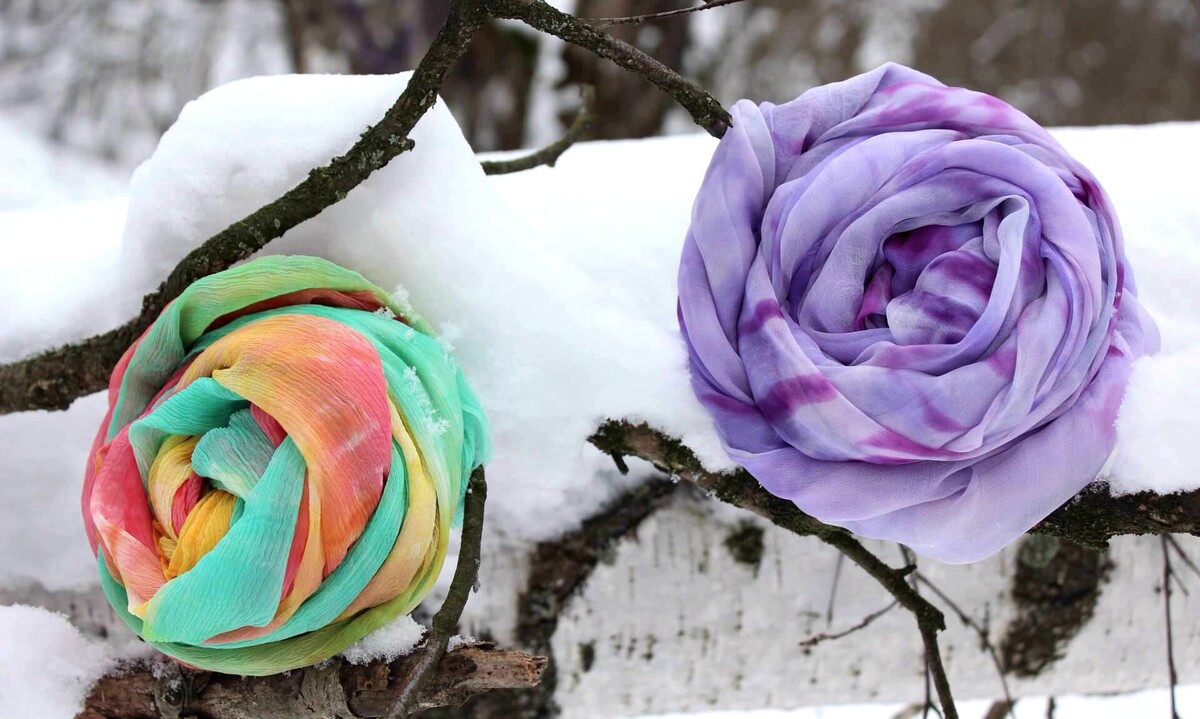 - Потом, мы выкрасим наши шелковые шарфы с помощью профессиональных красителей, закрепим в студии.