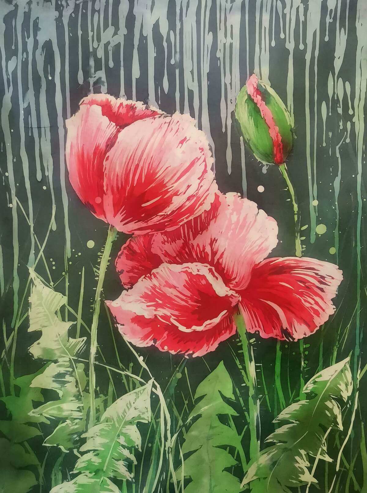 Рисуем цветы (ирисы (чаще всех), тюльпаны, маки....любые цветы на ваш выбор) в технике горячего батика.