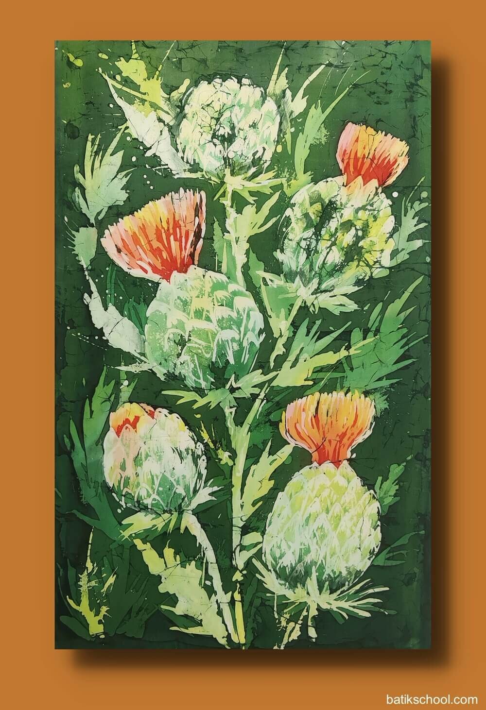 Рисуем цветы в технике горячего батика. Шаг за шагом, двигаясь от простого к сложному, мы дойдем до создания вашей картины.