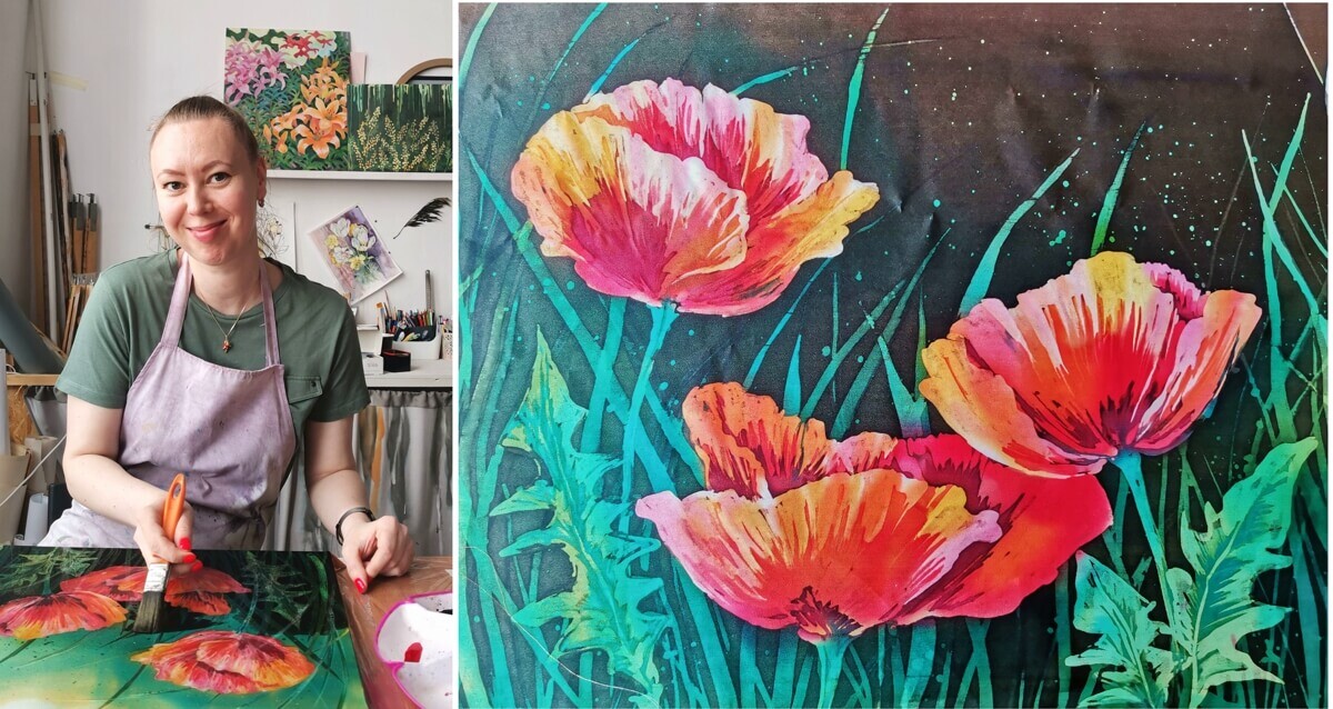 Алевтина сфотографировала куст маков у себя на участке и захотела именно их изобразить...