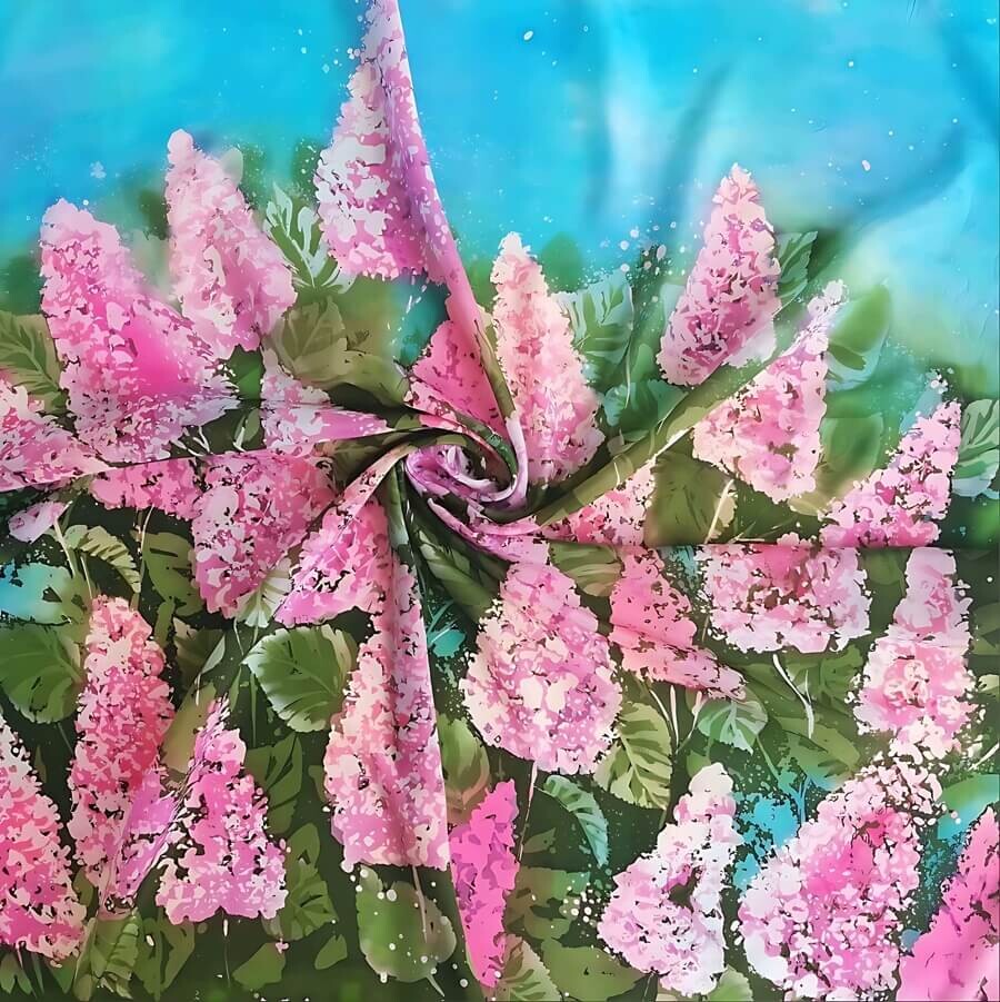 В мае зазвучит симфония восхитительной, ароматной, легкой и воздушной сирени. Мы расписываем платок (по желанию, можно выбрать картину на шелке) в горячем батике на шелке.